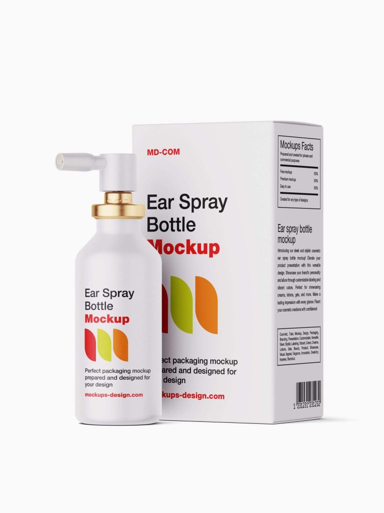 Get ready to enhance your design projects with this set of four free ear spray bottle and packaging box mockups, featuring different views and angles to showcase your branding from all perspectives. This mockup collection is perfect for packaging and branding presentations, allowing you to display your designs in a realistic, professional format. Simply download, place your artwork on the smart object layers, and enjoy a polished look that brings your ideas to life. With versatile angles and detailed textures, these mockups make an excellent addition to your toolkit for any design project.