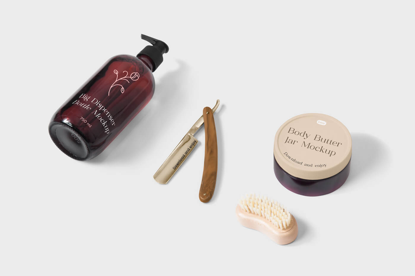 Today’s freebie is a barber shop salon branding mockup featuring a dispenser bottle and jar mockup. This mockup is a fast and easy way to exhibit your project to potential clients. Simply place your design in the smart object layer and the mockup will do the rest. It’s perfect for your next branding project in the barber or salon industry.