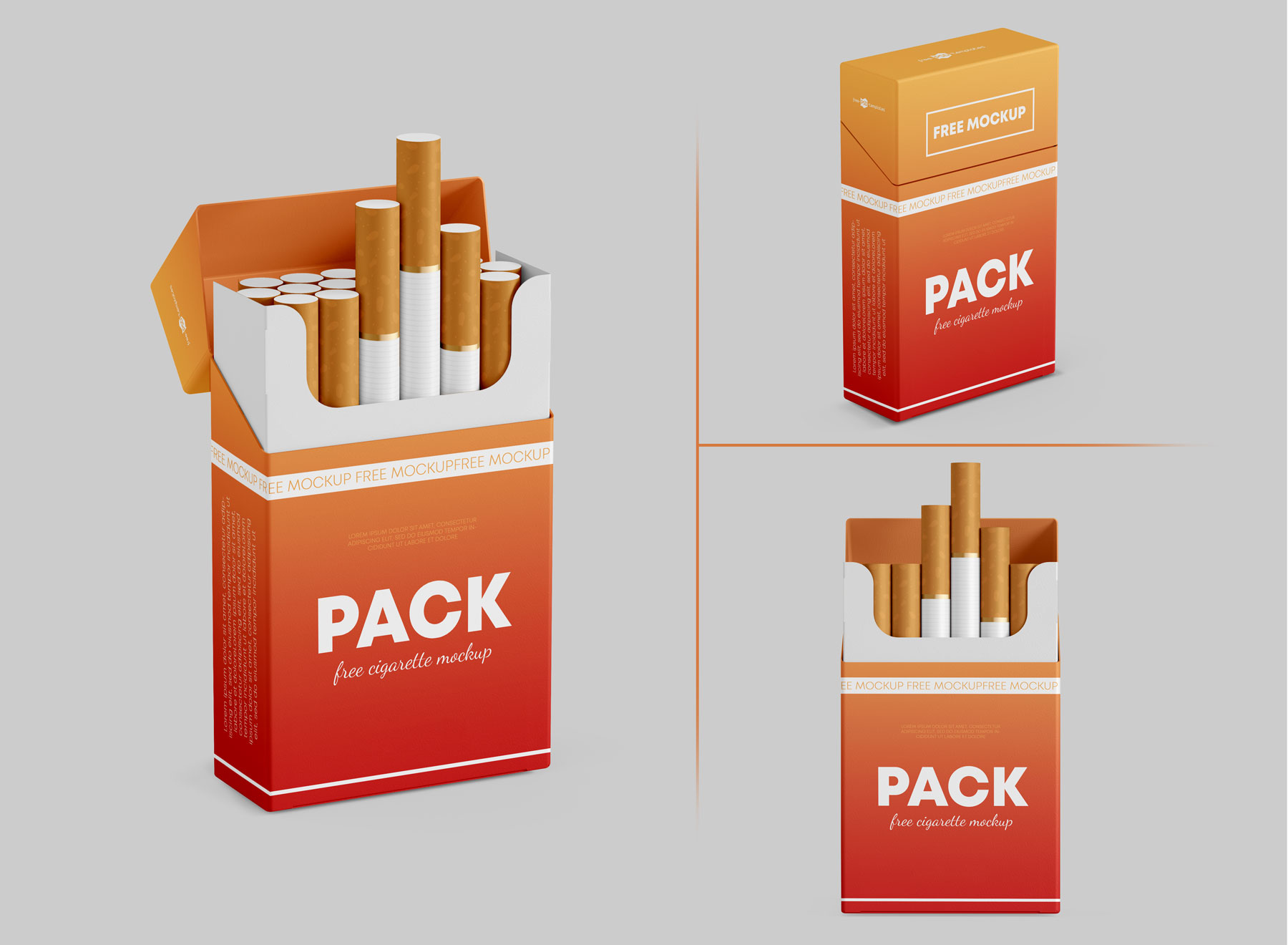 today we have a new packaging mockup resource cigarette pack mockups psd set comes in three different view and angle. Place artwork on smart objects and get a realistic outcome. You will also be able to change the background color. This mockup is created and shared by free-psd-templates.