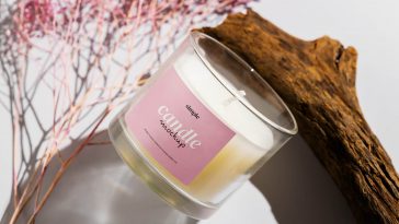 Round Candles Glass Jar with Packaging Box Mockup Scene