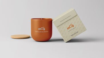 Round Candles Glass Jar with Packaging Box Mockup Scene