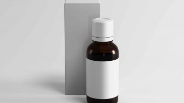 10 Free Amber Medicine Bottle With Box Mockup PSD Files 1