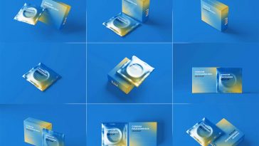 10 Free Condom Sachet and Packaging Box Mockups set for Branding