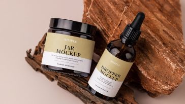 • Free Amber Jar and Dropper Bottle Mockup PSD