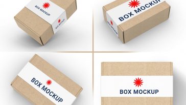 4 Free Rectangle Labeled Shipping Mailer Box Mockup PSD Files